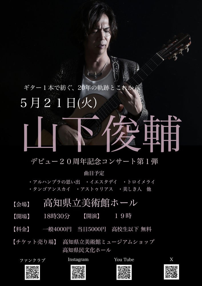 山下俊輔 デビュー20周年記念コンサート第一弾 LIVE 2026/05/21(木) 18:30 - 21:00 高知県立美術館ホール 5月21日 【会場】高知県立美術館ホール 【開場】18時30分 【開演】19時 【料金】4000円 当日5000円 子供無料 チケット予約 URLをコピーする 報告する